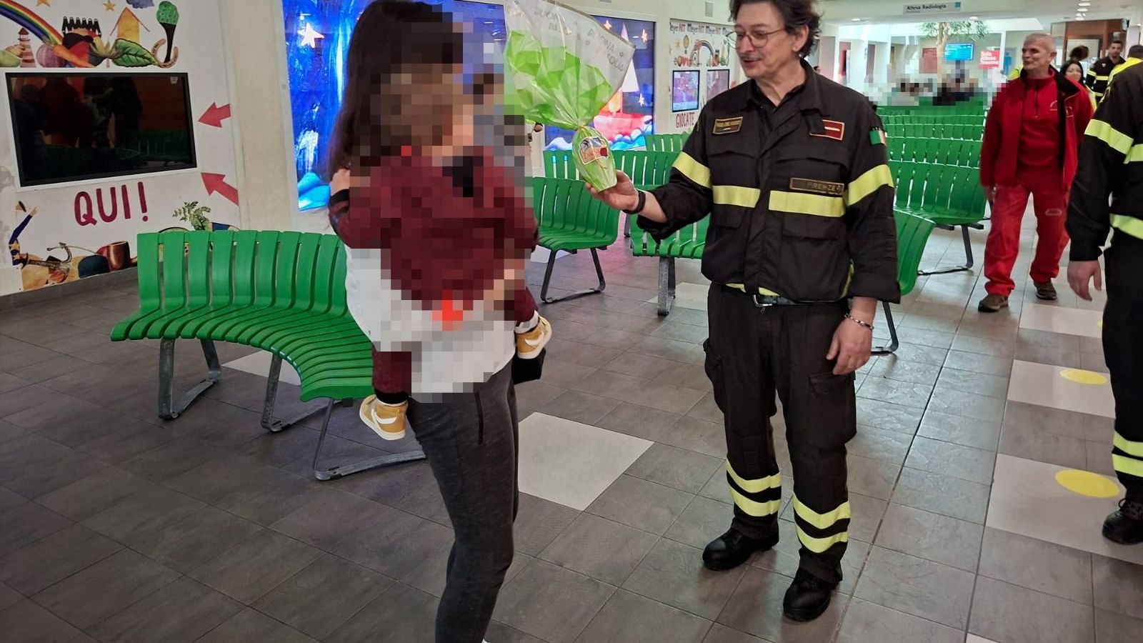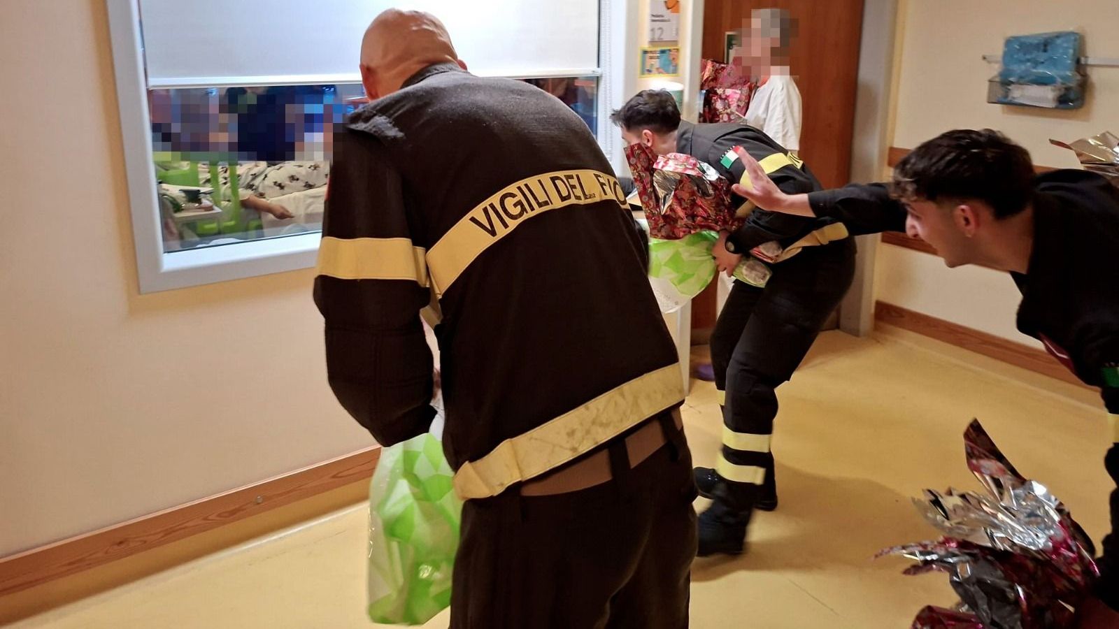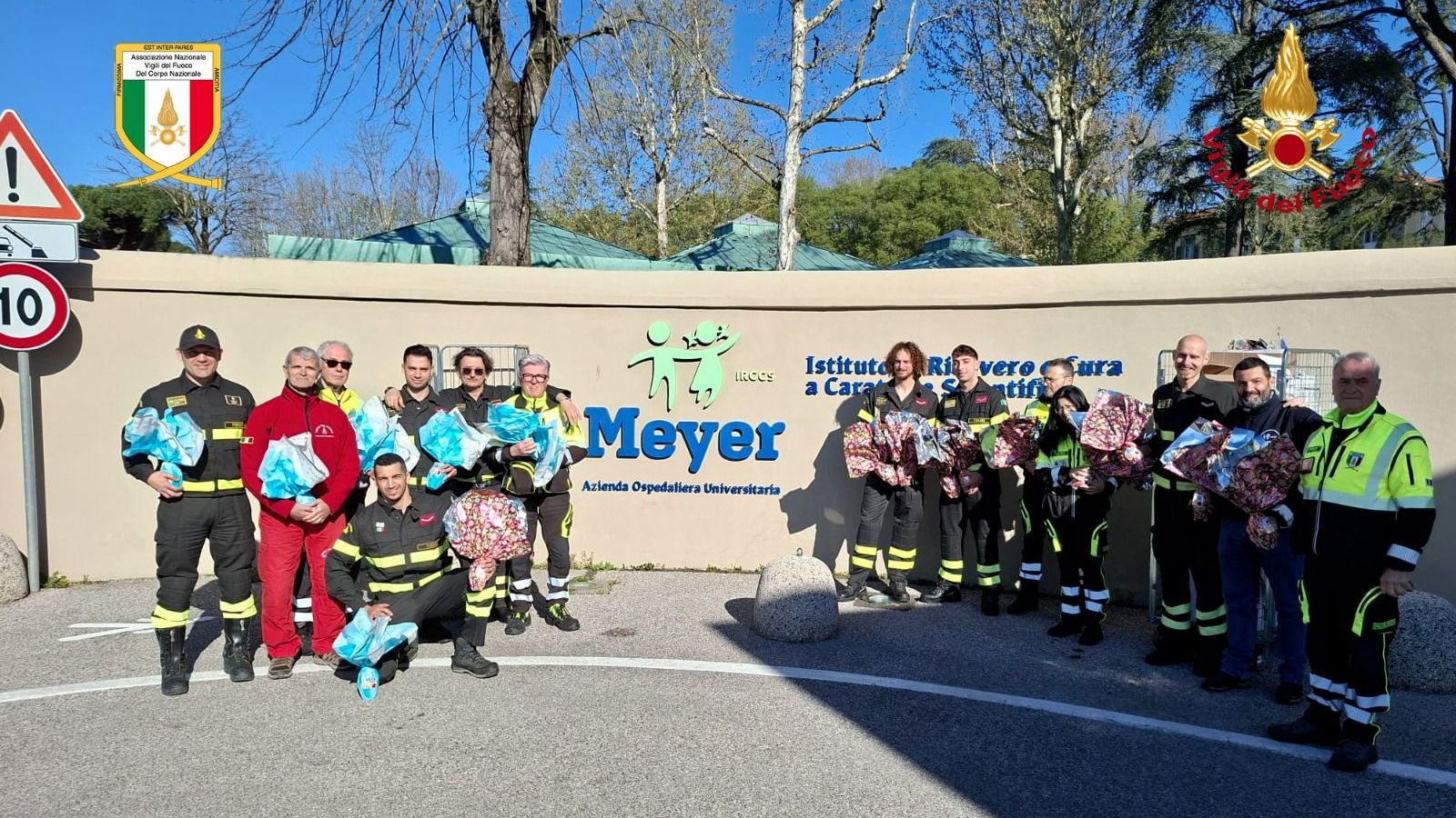 Questa mattina una delegazione dei Vigili del Fuoco del comando di Firenze insieme al personale dell'Associazione Nazionale Vigili del Fuoco sezione di Firenze, si è recata presso l’ospedale pediatrico Meyer a Firenze, per consegnare all’interno dei reparti 200 uova come segno di vicinanza in occasione della Pasqua ai piccoli ospiti della struttura sanitaria.