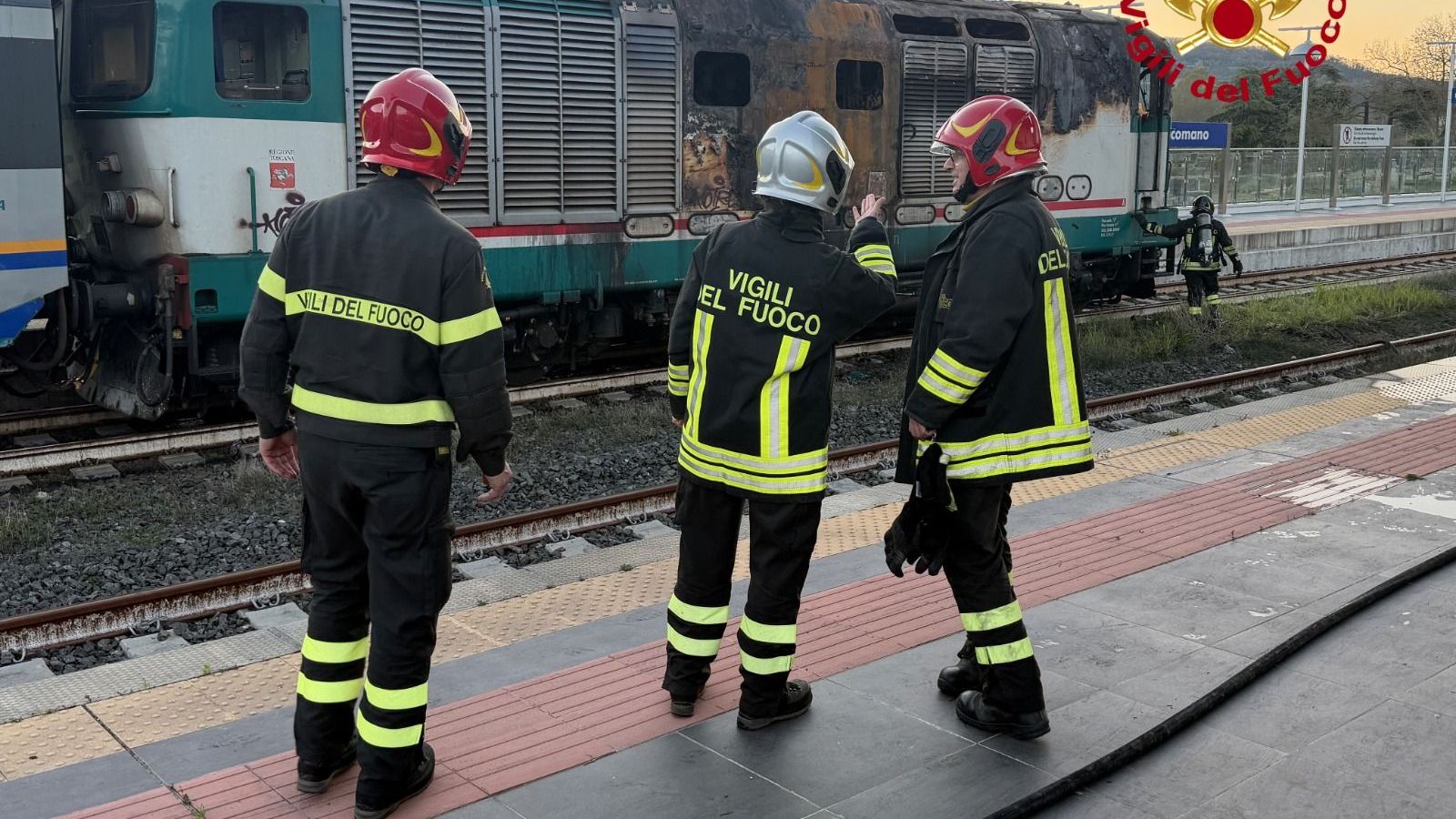 I Vigili del Fuoco del comando di Firenze, distaccamento di Borgo San Lorenzo di Pontassieve di dalla sede centrale, sono intervenuti dalle ore 17:35 nel comune di Dicomano in piazza della Stazione presso la stazione ferroviaria, per un incendio di un locomotore alimentato a gasolio.