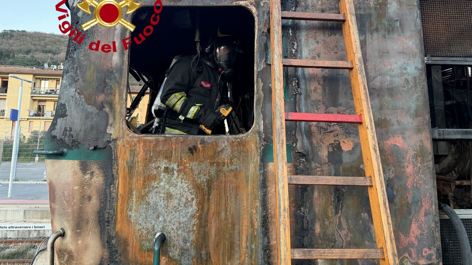 Incendio posto sotto controllo intorno alle ore 20, sono in corso le operazioni di bonifica del locomotore. Sul posto hanno operato due squadre, due autobotti e un carro aria. Non ci sono persone coinvolte.