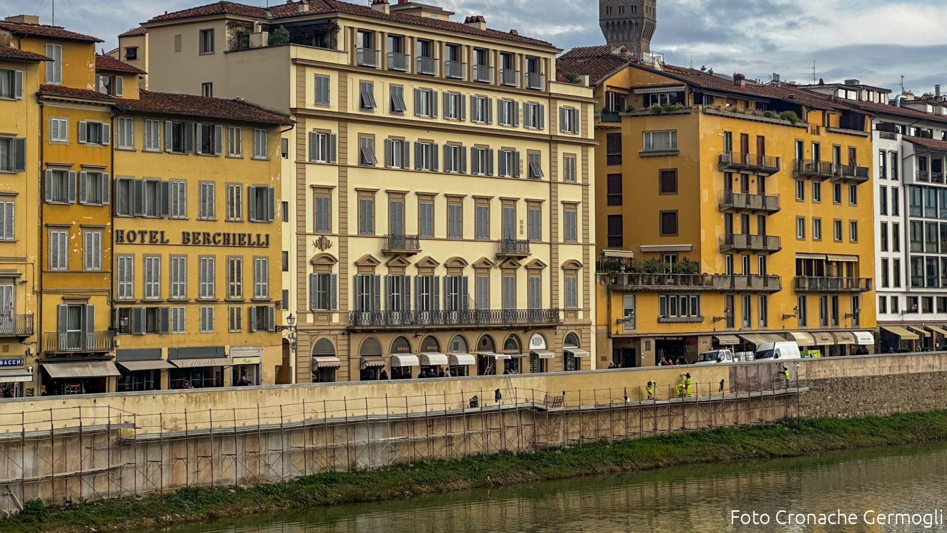 Negli ultimi giorni il rifacimento delle spallette sul Lungarno Acciaiuoli, nel tratto tra Ponte Vecchio e Santa Trinita, è finito al centro delle polemiche per il colore chiaro dell’intonaco, giudicato da molti fuori contesto rispetto al paesaggio storico.