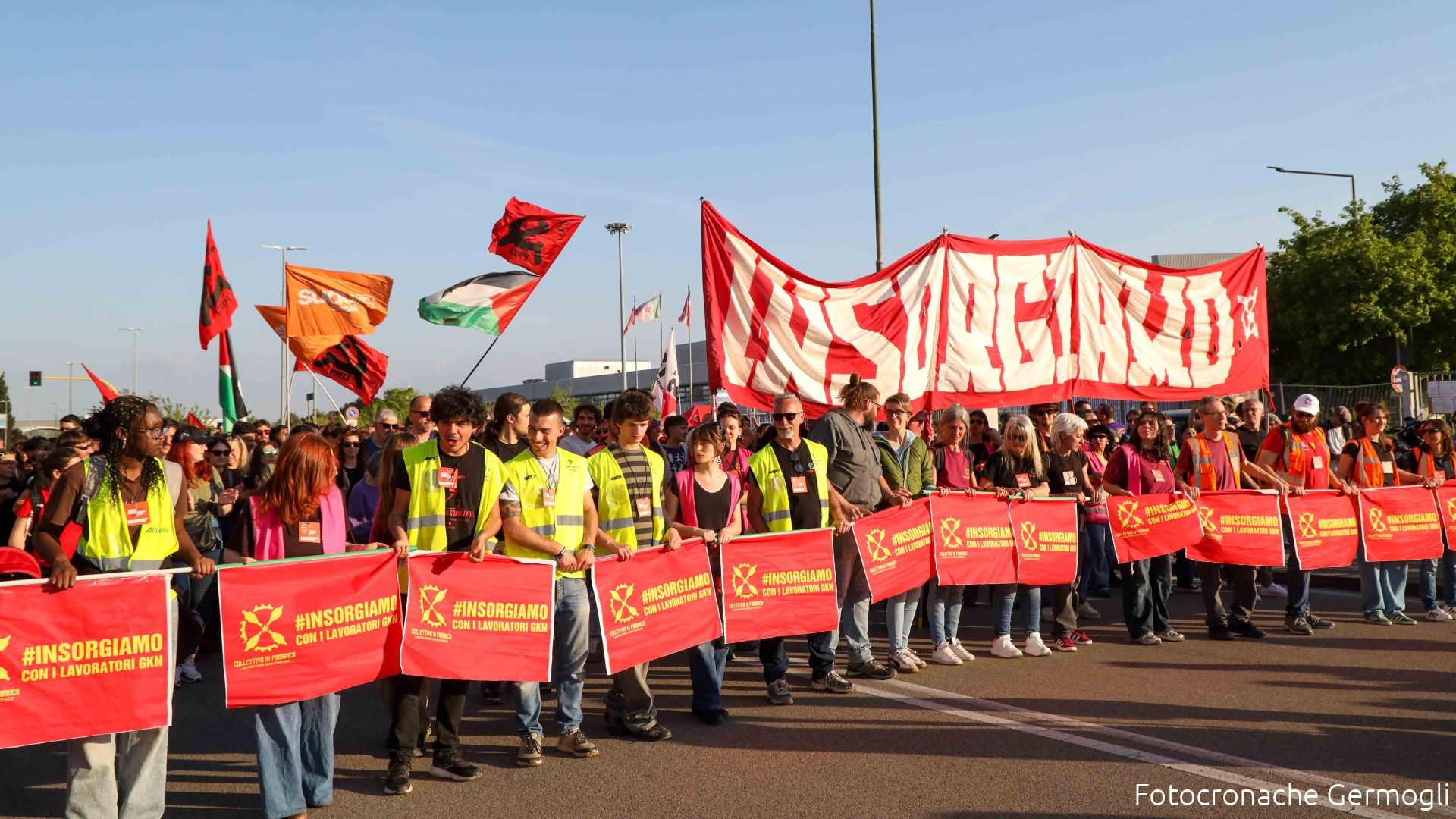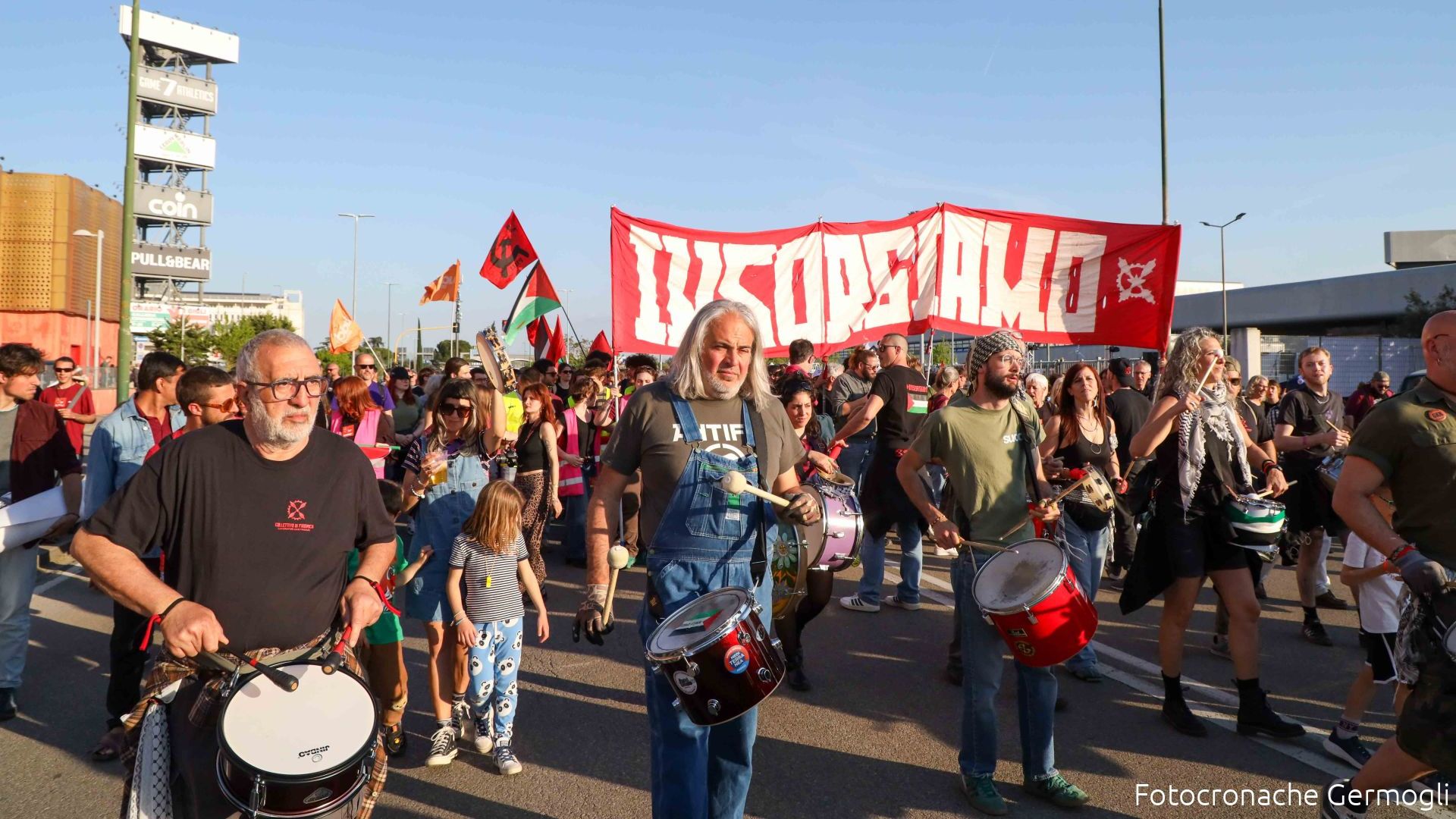 "Oops...we did It again - scrive sui social il il Collettivo di fabbrica Gkn, che pubblica una foto del corteo - Ma se da ogni fabbrica si sapesse contro il riarmo? Andremmo a prenderci euro per euro quei 1000 miliardi di euro e ne faremmo semplicemente una società migliore, cura, cura di noi, del territorio, del futuro. Non esiste oggi alcun intervento pubblico a favore di questo. Come non esiste alcun intervento per fermare genocidio, guerra e crisi energetica. Esistono i nostri corpi, i nostri sforzi, le flotille che partono, il mutuo aiuto reciproco. Ed esiste, se lo vorremo, una flottilla nell' economia, una fabbrica socialmente integrata. Ecco cosa vi diciamo: sono iniziati gli ultimi 90 gloriosi giorni, poi decideremo come e quando salpare; per quanto spingere come non mai sulla campagna "un'azione contro il riarmo"; sostenete l'azionariato popolare".