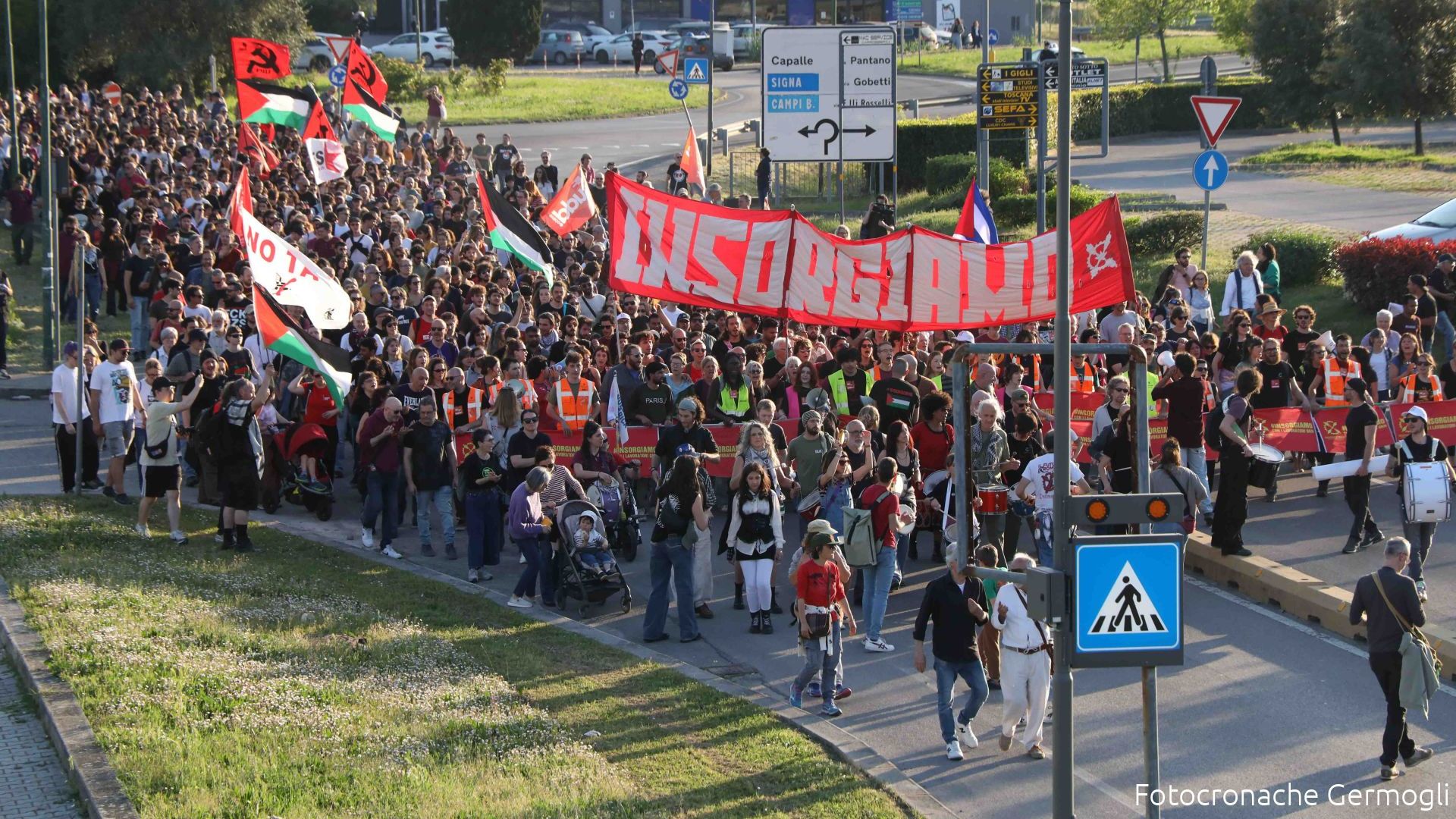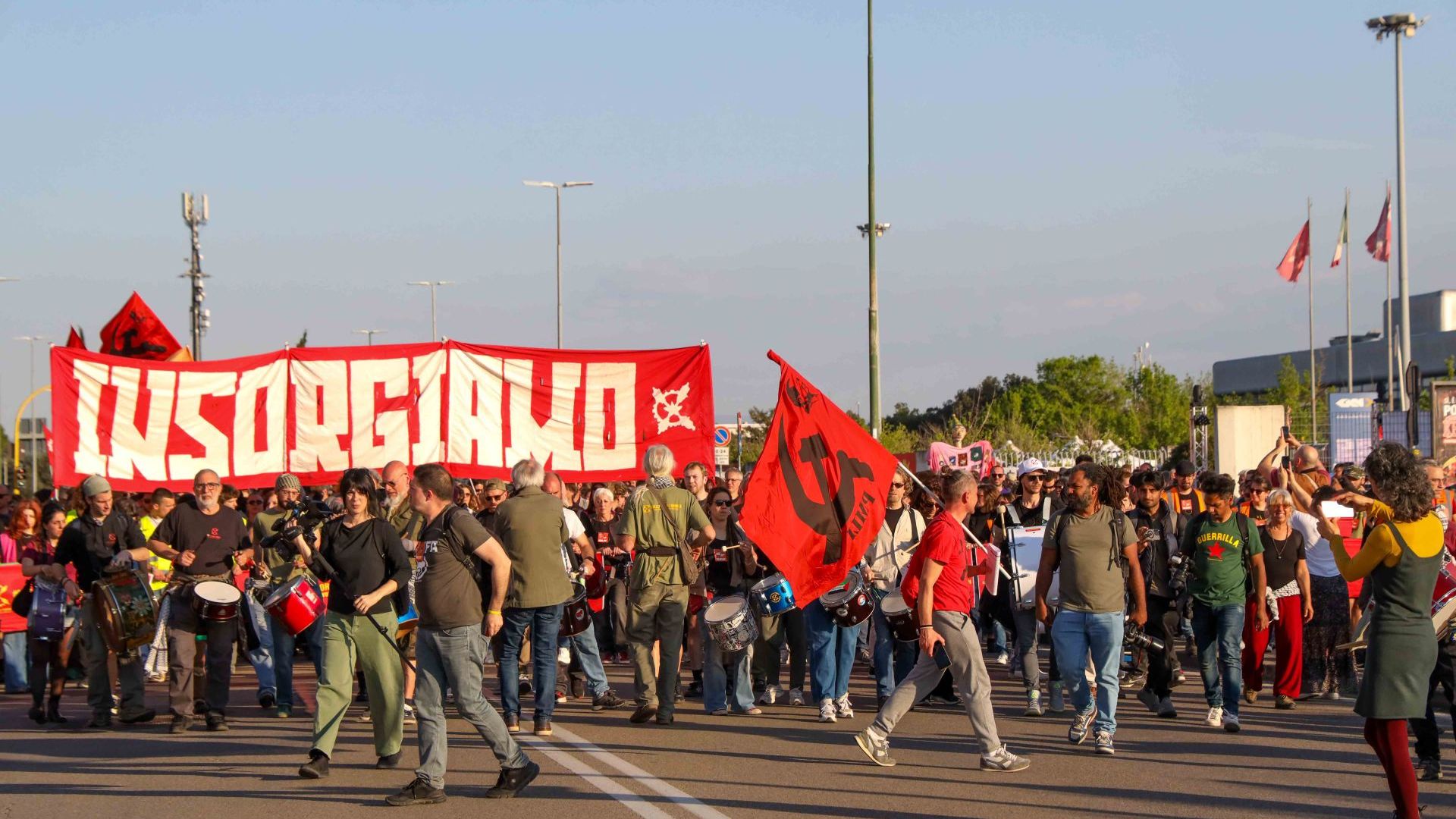 Davanti a quella scritta "Insorgiamo" che Firenze ha visto in corteo molte volte, "Salpiamo contro il riarmo" è lo striscione che ha aperto la manifestazione di oggi pomeriggio, parte integrante del programma del Festival, e partita dalla ex Gkn di Campi. Una chiamata, quella del Collettivo di fabbrica, alla quale ancora una volta hanno risposto in molti.