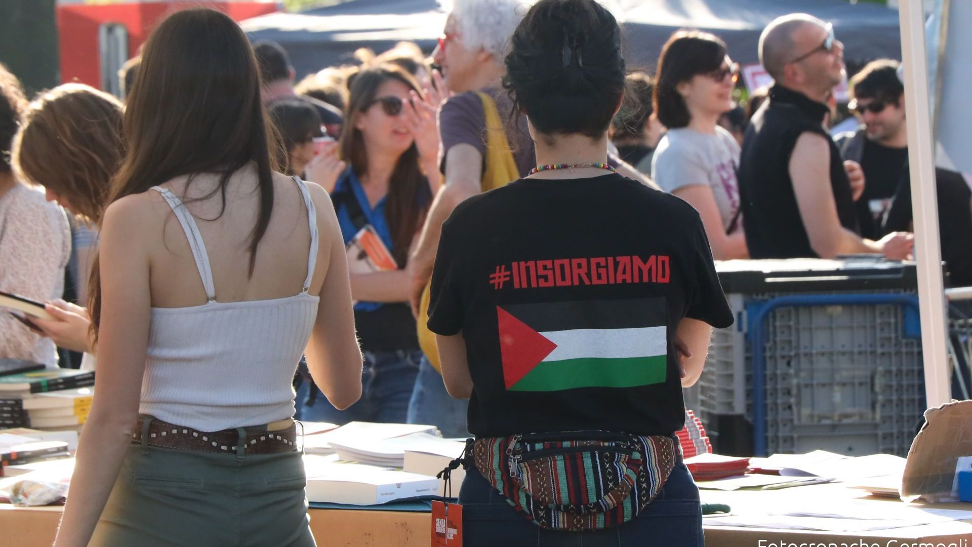 La manifestazione durante il Festival di letteratura working class in programma al presidio