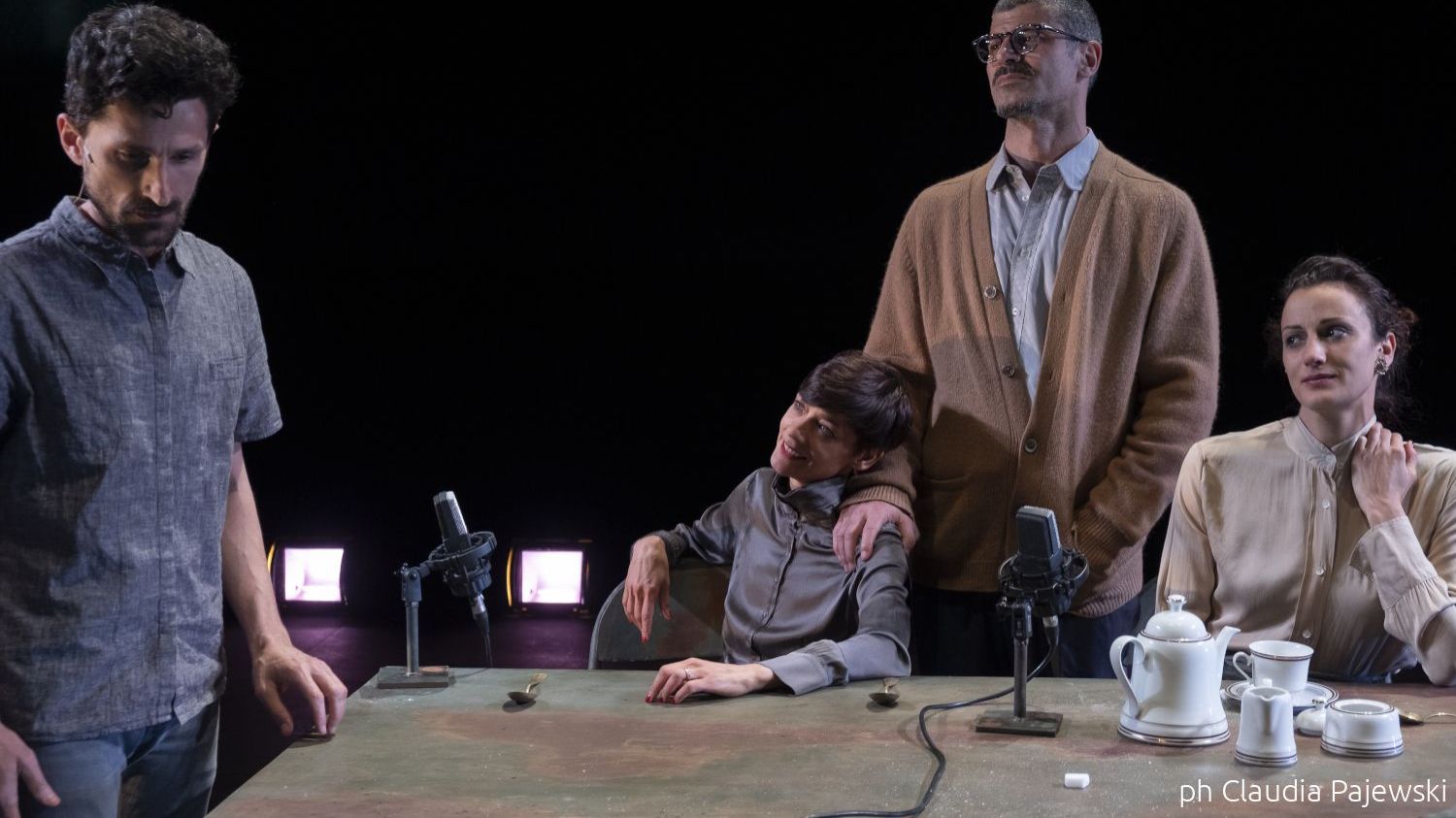Ne L’amore del cuore di Caryl Churchill, con Tania Garribba, Fortunato Leccese, Alice Palazzi, Francesco Villano e con Lorenza Guerrini, regia di Lisa Ferlazzo Natoli, la struttura stessa dello spettacolo è un congegno a orologeria. La narrazione viene ripetuta, riavvolta, alterata, operando un’indagine sul tempo, uno dei temi di ricerca principali della compagnia: un tempo che non è mai lineare, ma circolare o frantumato. Così, la famiglia rappresentata non è solo un nucleo affettivo, ma un luogo di “rituali vuoti”.