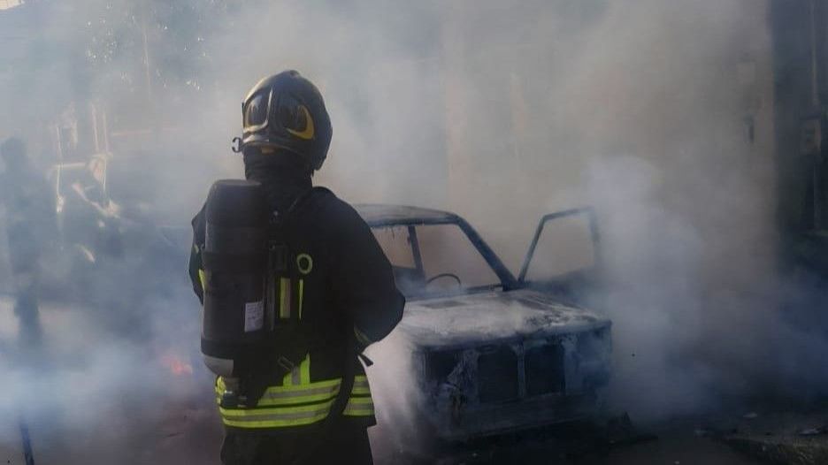 All'arrivo dei pompieri la vettura era completamente avvolta dalle fiamme