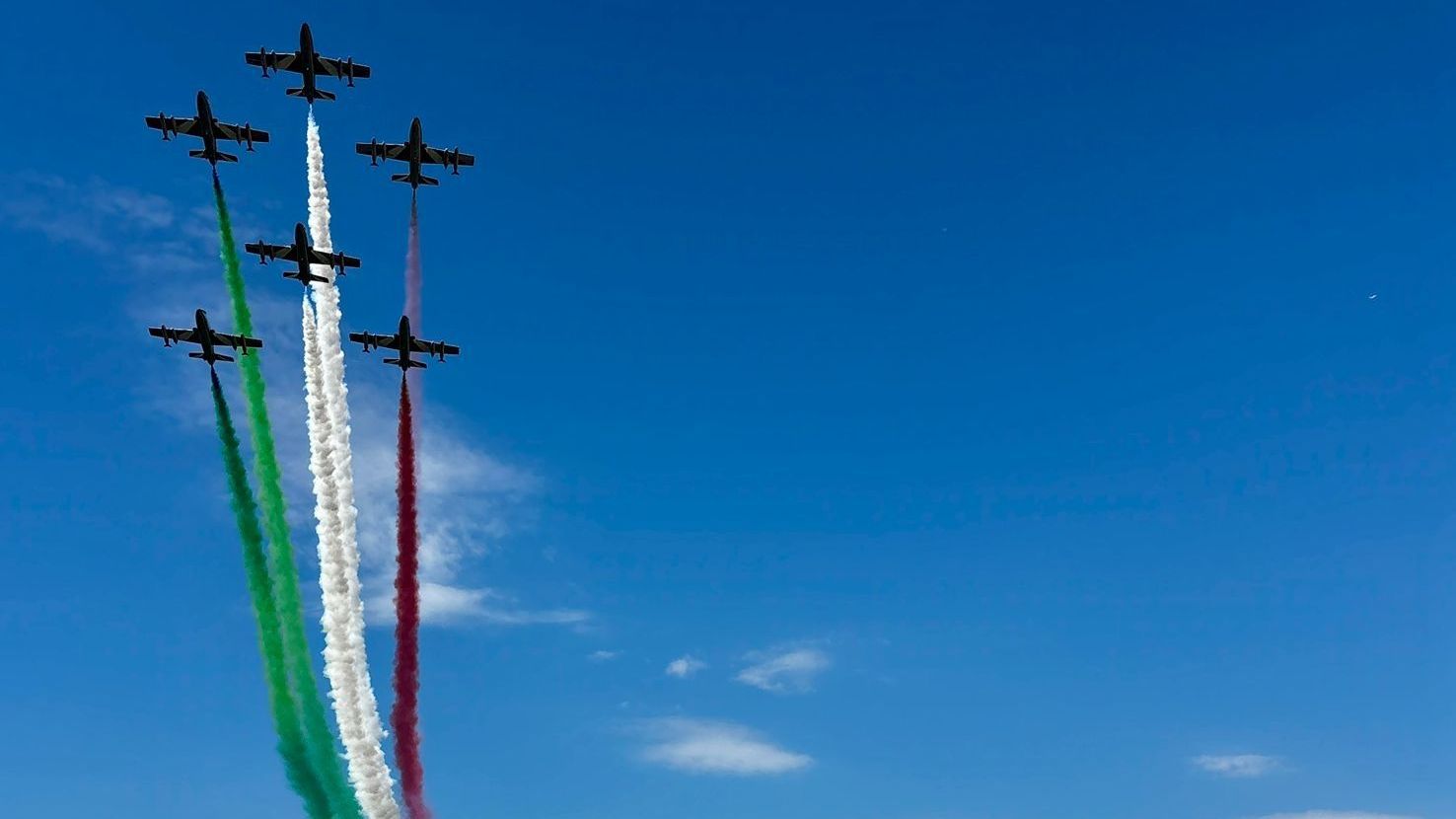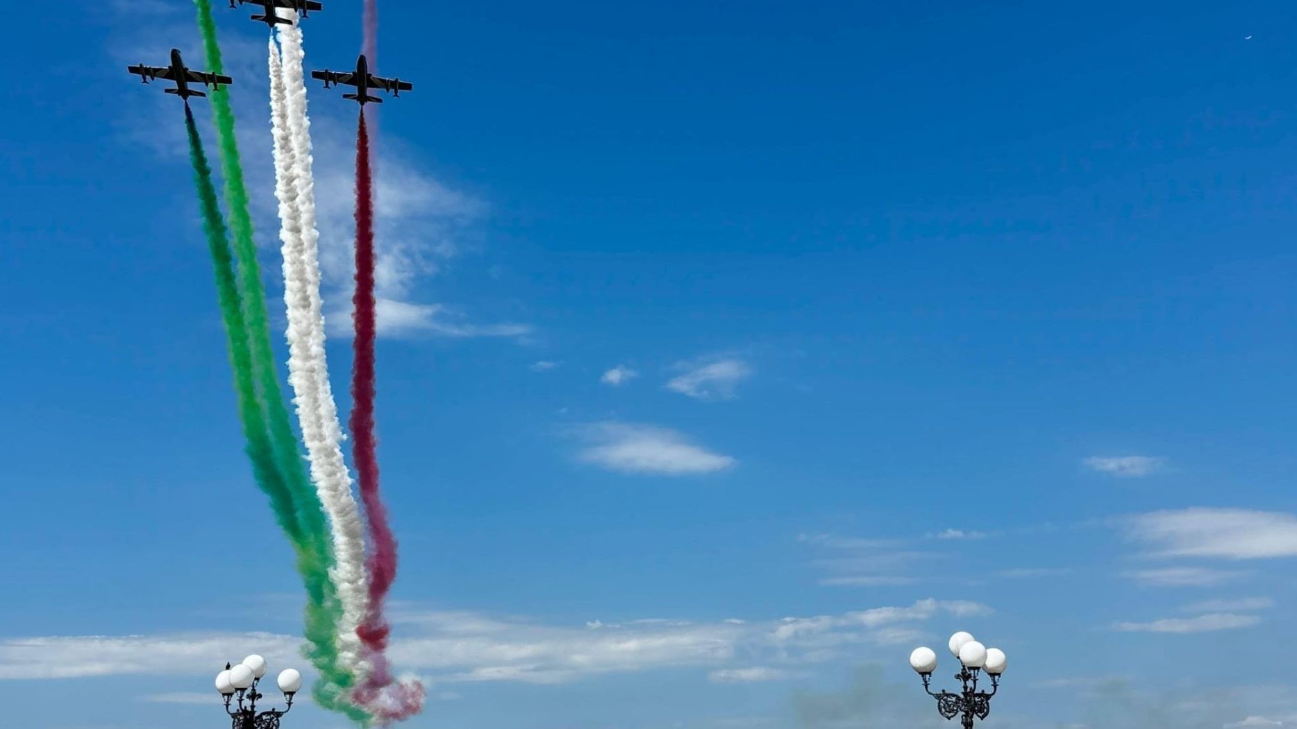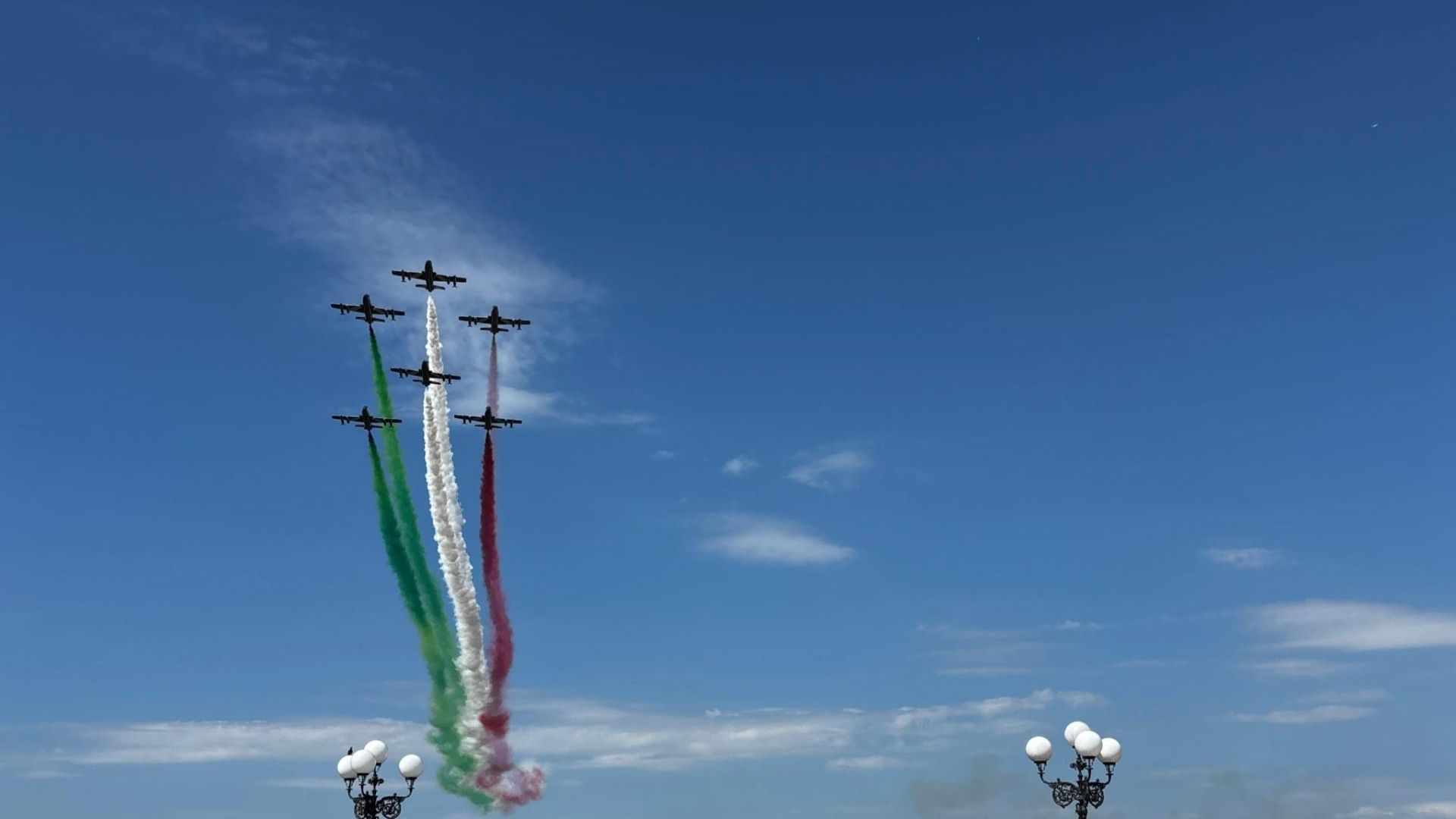 Tutti con lo sguardo al cielo per il sorvolo delle Frecce