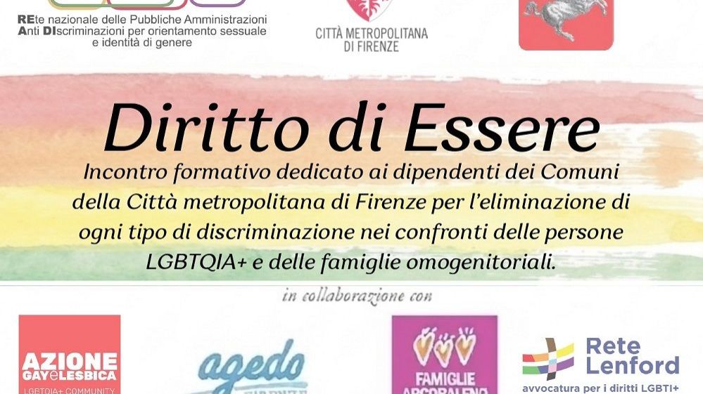 La Direzione "Provveditorato, Gare, Forniture, Turismo, Cultura e Polizia - Ambito Sociale" della Città Metropolitana di Firenze ha organizzato il percorso formativo "Diritto di Essere", dedicato ai dipendenti dei Comuni della Città Metropolitana di Firenze e dell'ente stesso, per favorire l’eliminazione di ogni tipo di trattamento discriminatorio nei confronti delle persone LGBTQIA+ e le famiglie omogenitoriali.