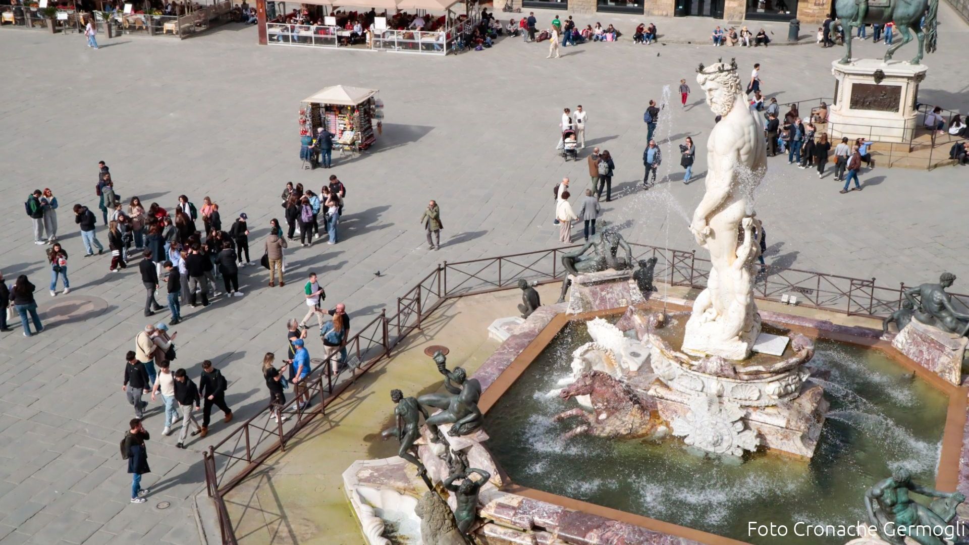 Danneggiata la fontana del Nettuno in piazza della Signoria: intervento della municipale