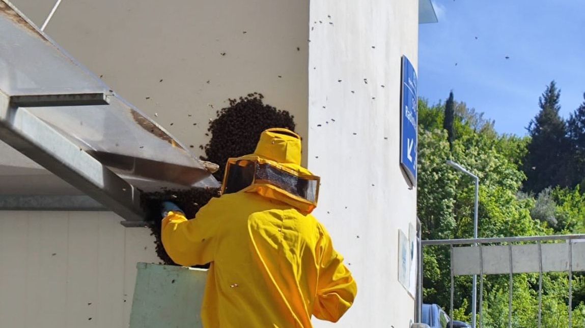 Alveare fuori dall'ospedale, operazione di recupero: messe in salvo 60mila api