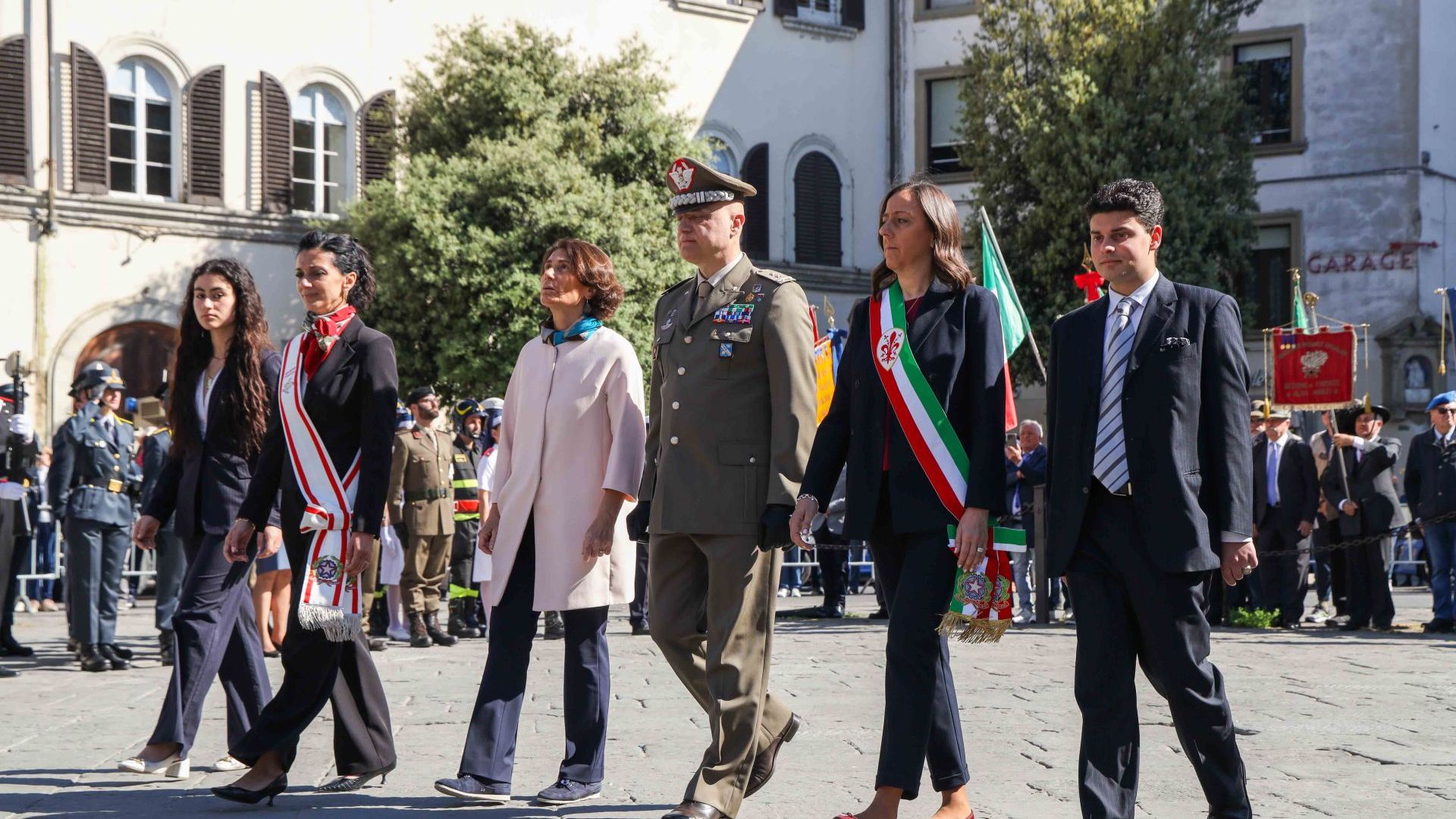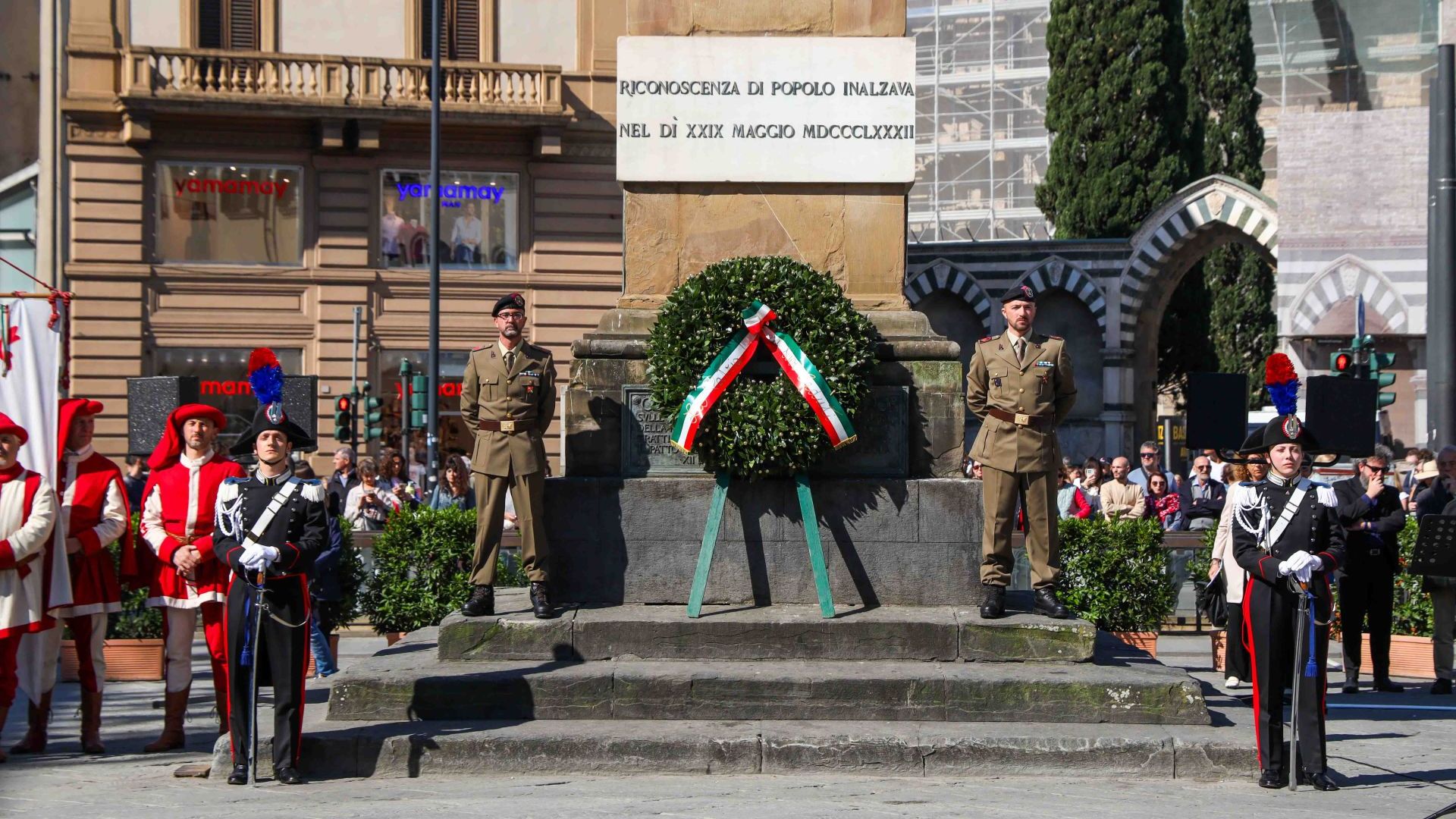 Le cerimonie ufficiali hanno preso il via la mattina alle 10 con la deposizione di una corona di alloro in onore dei caduti di tutte le guerre in piazza Unità Italiana, da lì è partito il corteo che ha raggiunto Palazzo Vecchio.